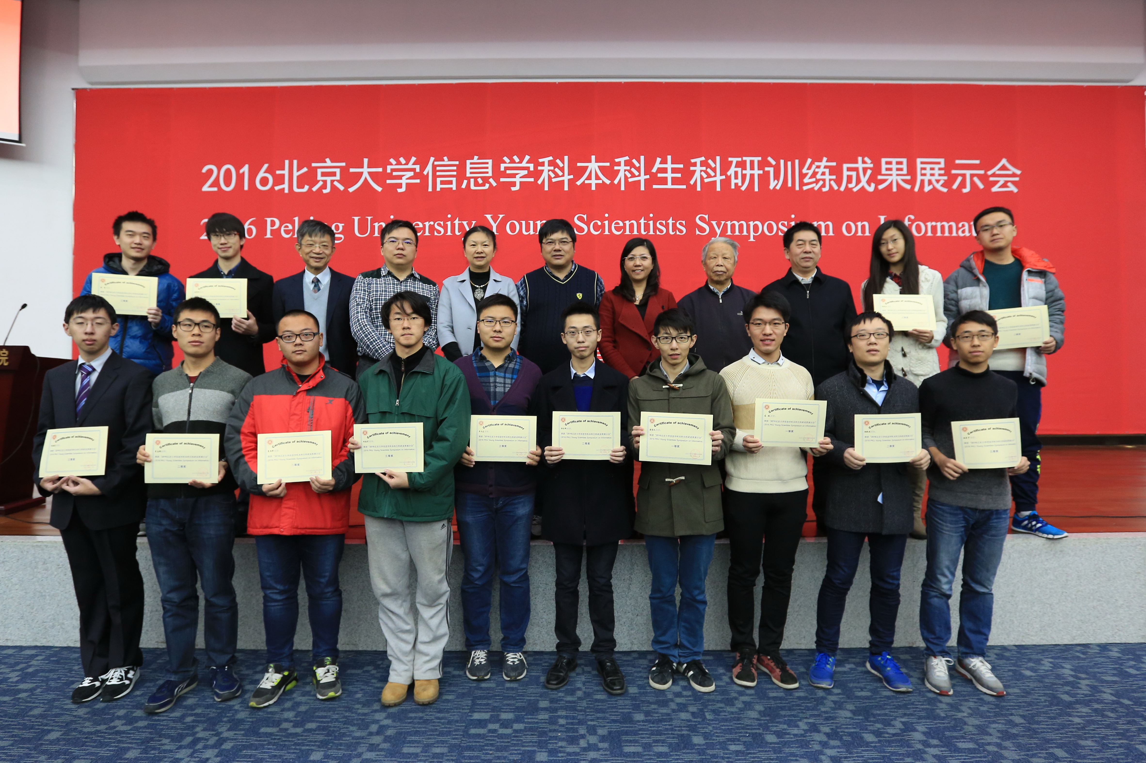2016年11月25—26日,由头号玩家官网登录入口主办的第四届北京大学信息学科本科生科研成果展示会在北京大学国际关系学院秋林报告厅举行。会议由信息学院副院长李文新教授、前副院长陈徐宗教授联合主持。北京大学前常务副校长王义遒教授、教务部副部长刘建波教授、信息学院院长黄如院士等莅临指导。