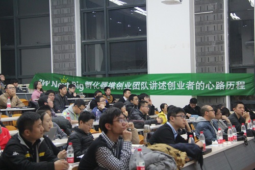 接着,来自各创业团队的嘉宾依次讲述自己的创业经历和心得体会。秀客网创始人杨立琮与同学们分享了他的创业故事,他认为创业的动机应来自于兴趣爱好而非钱财名利,成功的创业需要了解社会的流行趋势和发展方向。玩编程联合创始人高健凯讲述了他的求学历程和创业心得,他表示创业应尽早开始,边创业边学习。北京力拓飞远科技有限公司创始人任永亮结合产品理论和混沌理论,表达了自己对互联网产业的理解。点心科技联合创始人马文亚从社会和用户需求的角度对比分析了保险、基金、理财等金融领域的问题。实现网创始人王龙行则分享了自己放弃工作自主创业的历程,通过具体事例告诉我们一个团队需要相互信任和支持才能走向成功。