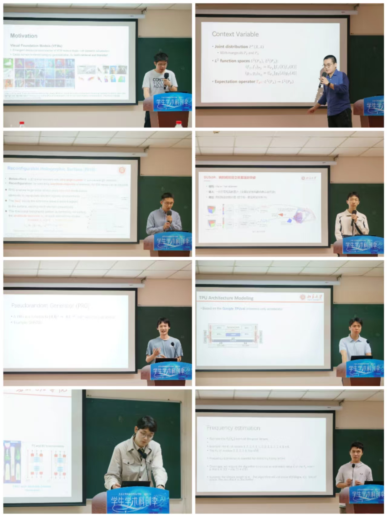 在亮点报告环节中,同学们用简洁明了的语言,介绍了自己的科研项目和成果。同学们的研究领域涉及基于三维视觉的可泛化机器人物体操作、大规模超表面混合近远场宽带传输、倒装堆叠晶体管沟道形貌及耦合效应研究等。同学们利用丰富的图表和实验数据,生动而具体地展示了自己的研究成果,让现场观众对信息科学技术学院本科生科研成果有了更深入的了解和认识。