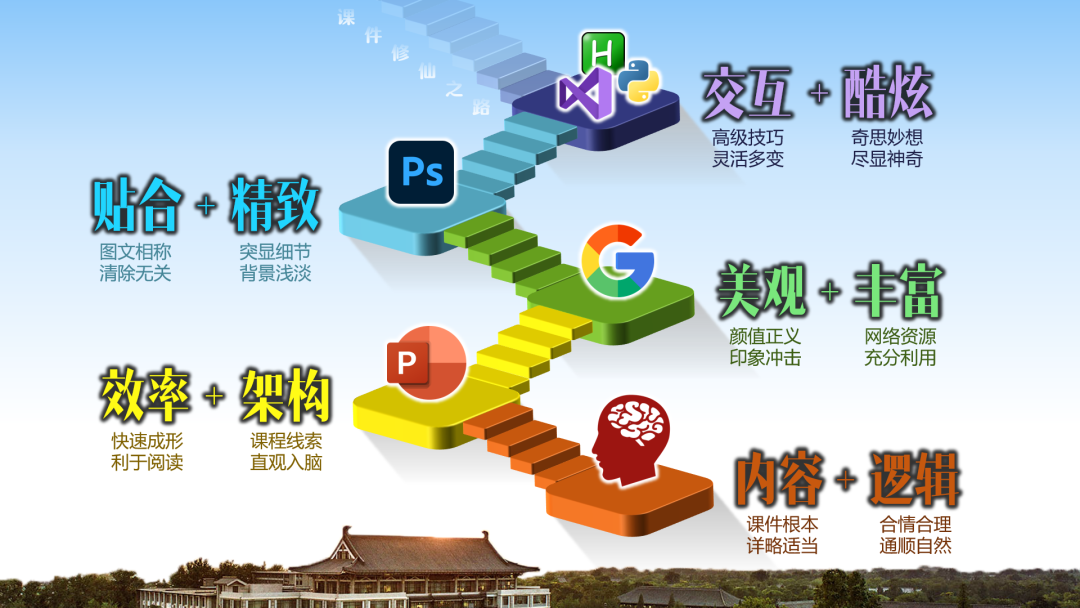 2019年后,陈江担任教师教学发展中心的培训专家,“老师的老师”这一特别身份得到进一步凸显,每年青年教师的培训头号玩家娱乐app官网都少不了他的身影,话题不限于课件的制作,还包括多媒体技术的运用、课堂中的互动。此类头号玩家娱乐app官网的主题集中于“课件的品质与效率”——品质的重要性自不待言,美观只是最低层次的标准,本质要求则是全局观、逻辑性的呈现。效率则意味着在时间的硬性约束下,课程的准备能以更高效的方式展开。