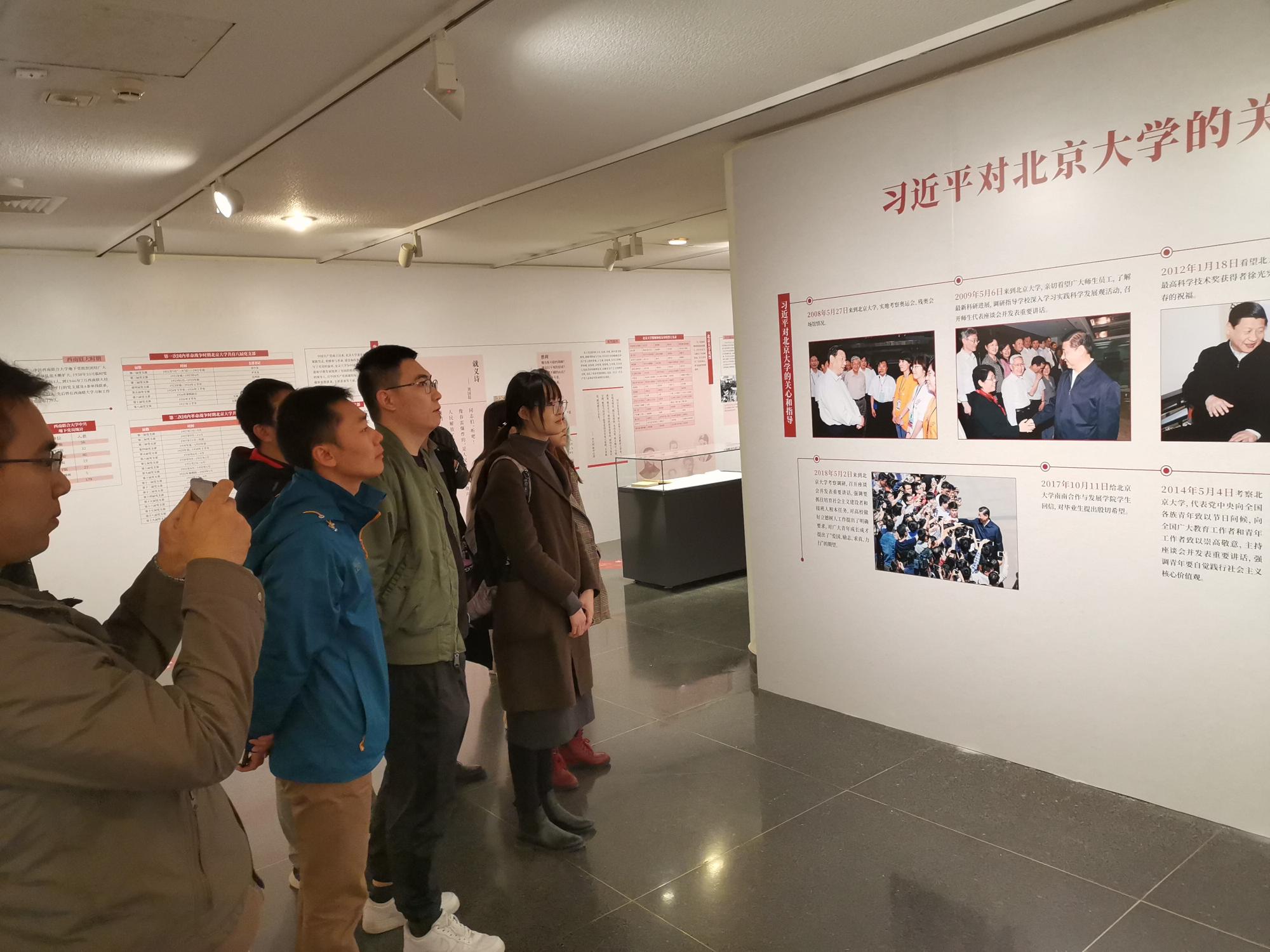 支部同学在“习主席对北京大学的关心和指导”版块前认真体悟习主席的关怀和期望