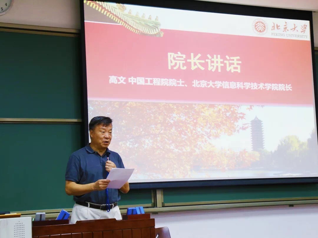 会议伊始,高文院长代表信息科学技术学院对19级新生选择北大、选择信科表示热烈的欢迎与衷心的祝贺。他指出,北京大学与国家和民族的命运紧密相连,在座的同学们都是幸运的,都将成为实现中华民族伟大复兴的见证者、亲历者和建设者。接着,高文院长对新生们提出了五点期许:第一,希望同学们可以顺利过渡,用最短时间完成从高中生到大学生的跃变;第二,希望同学们树立远大目标,努力成为杰出青年,服务祖国,造福人类。第三,希望同学们一步一个脚印地踏踏实实做事、认认真真做人;第四,希望同学们团结向上,身体健康;第五,希望大家勇于承担责任,做新时代的建设者。在讲话的最后,高文院长祝愿2019级所有新同学在北大、在信科度过一段最快乐、充实与难忘的大学时光!