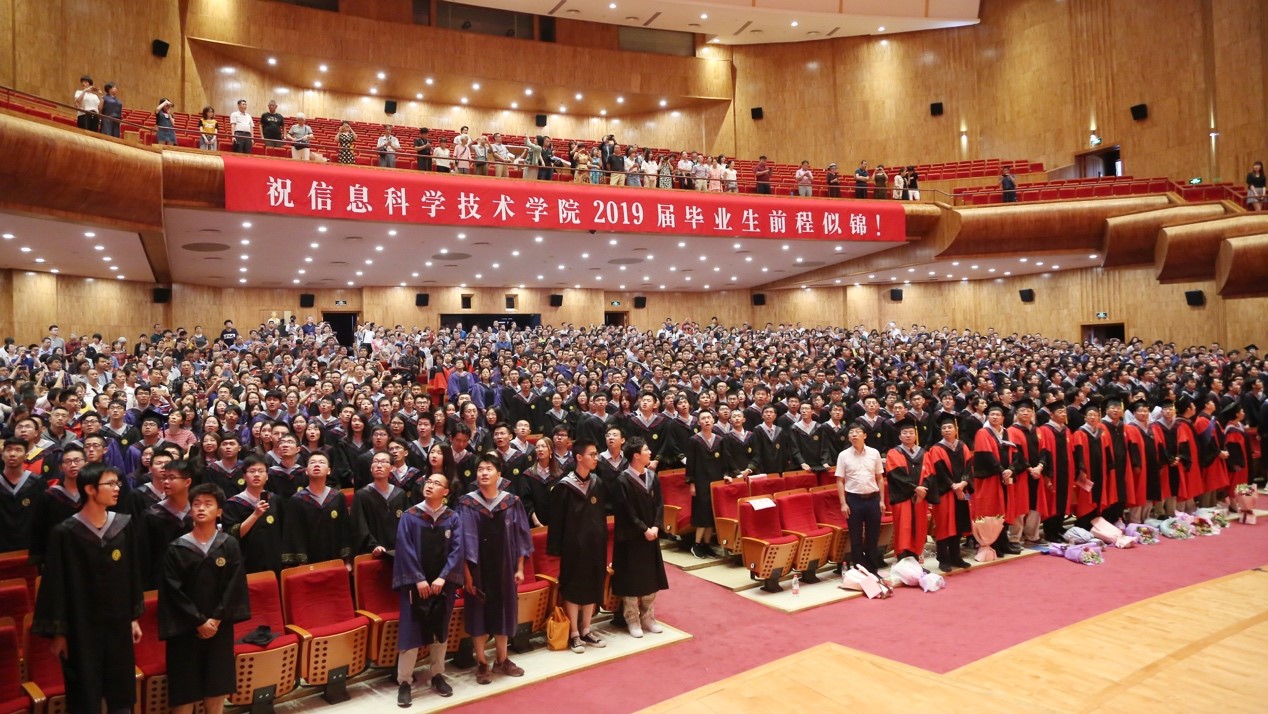 7月1日上午,信息科学技术学院2019年毕业典礼在百周年纪念讲堂观众厅隆重举行。学院党政班子成员、教师代表、家长代表及2019届毕业生等一千余人参加了典礼。典礼由学院党委副书记熊校良主持。