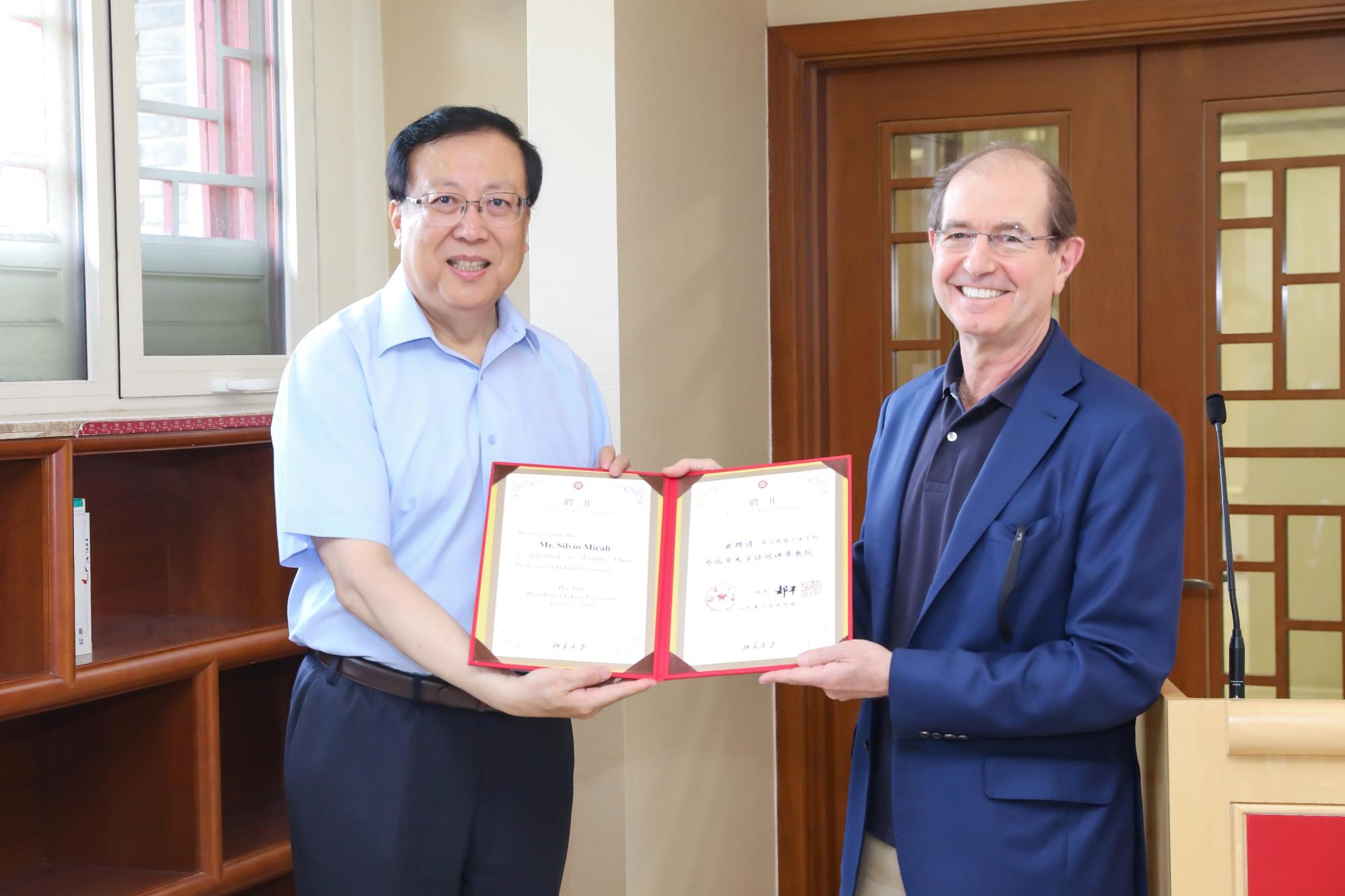 2019年6月12日,麻省理工学院Ford讲席教授、2012年图灵奖(A.M. Turing Award)获得者希尔维奥·米卡利(Silvio Micali)教授北京大学聘任仪式暨学术头号玩家娱乐app官网在静园五院204会议室举行。北京大学校长郝平为米卡利教授颁发北京大学访问讲席教授聘书。来自信息学院、数学科学学院等单位的近百名师生参加头号玩家娱乐app官网并见证聘任仪式。活动由前沿计算研究中心执行主任陈宝权教授主持。