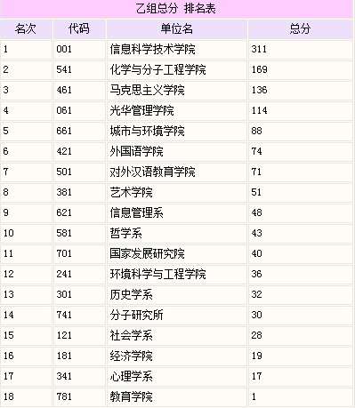北京大学2015年运动会总分及排名(乙组)