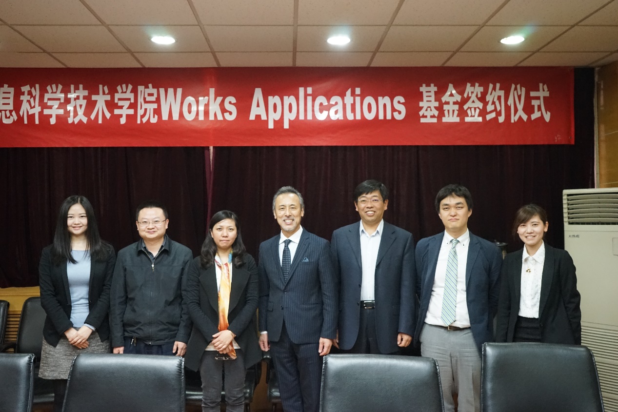 2015年4月17日上午,头号玩家官网登录入口Works Applications基金签约仪式在理科二号楼2135会议室举行。上海万革始应用软件有限公司董事长五十木正,国际招聘部水野克哉,信息科学技术学院院长黄如,党委书记魏中鹏,党委副书记卢亮,学工办主任李子奇等出席了此次签约仪式。