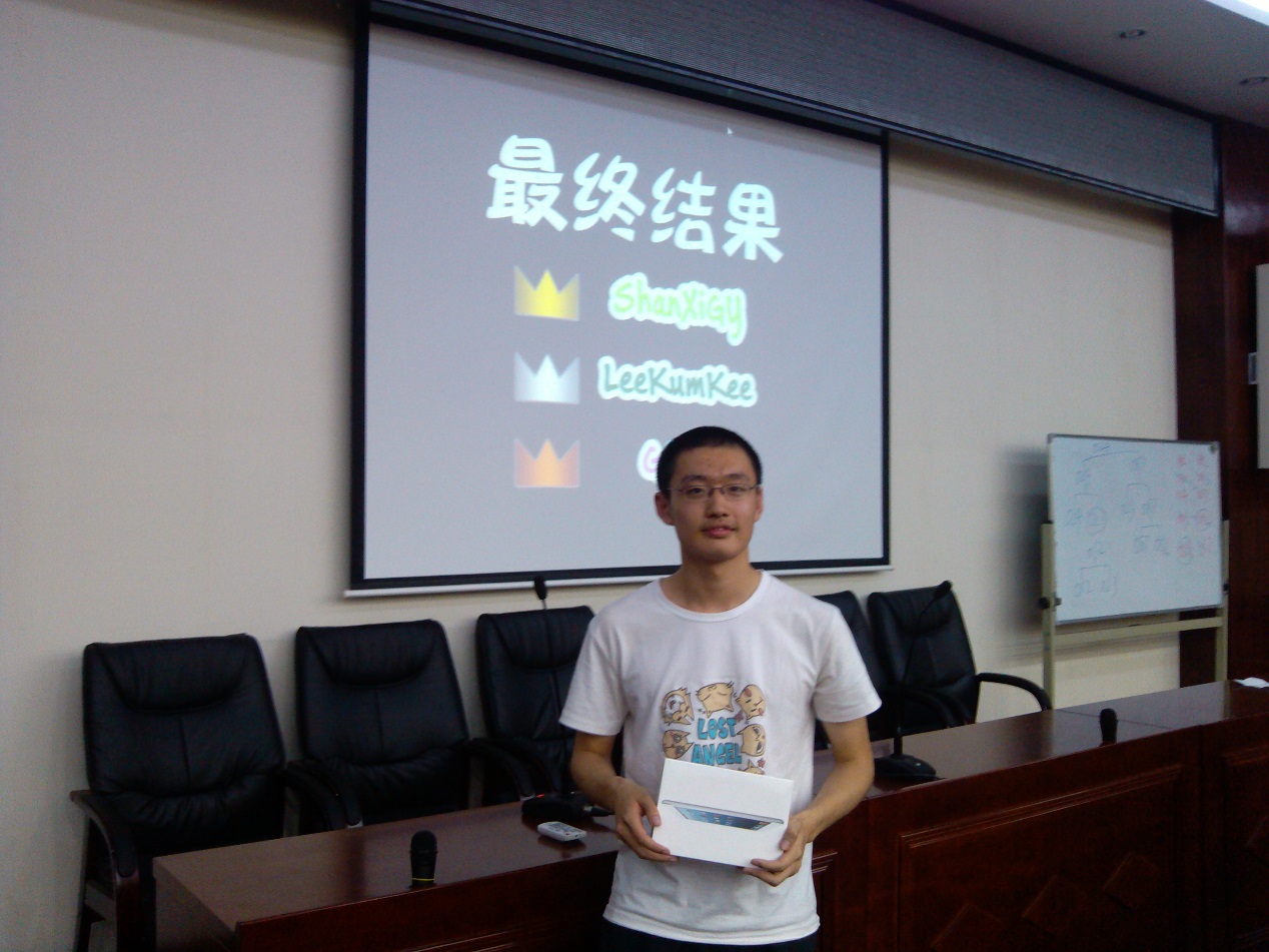 6月9日举办的决赛邀请了八强队伍及其他队伍前来观赛,开始时八支队伍先进行抽签决定分组顺序。在紧张的评测中,八支队伍进行了经验交流,分享了各自的算法。随后大家共同观看了比赛全程,见证了冠、亚、季军的产生。经过激烈的角逐,信息科学技术学院大一同学关宇、杜宇飞分别获得了冠、亚军,李旭鹏、贺心蕊、史默臻三人队伍获得了季军。比赛结束后进行了颁奖仪式,为各获奖队伍颁发了精美奖品。至此,第五届北京大学游戏对抗赛完满结束。