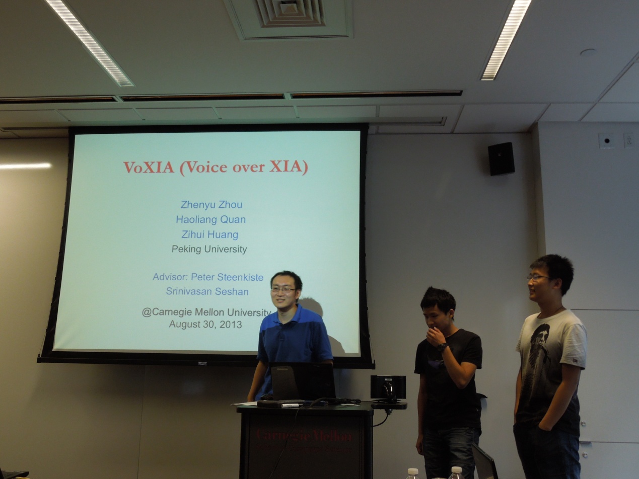 在学生暑期科研项目完成之前,北大学生于2013年8月30日在CMU举办了一个展示科研成果的研讨会(Peking University Symposium on Student Summer Research)。CMU计算机学院院长Randy Brant、系主任Frank Pfenning,以及相关的学生导师出席了该研讨会。北大计算机系相关教师在李文新副院长带领下也参加了该研讨会,并在会后与各位同学进行了深入交流。研讨会由CMU资深教授、北大计算机系84级毕业生Hui Zhang(张辉)教授主持。