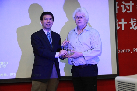 Jason Cong为Wayne Luk教授颁发水晶牌