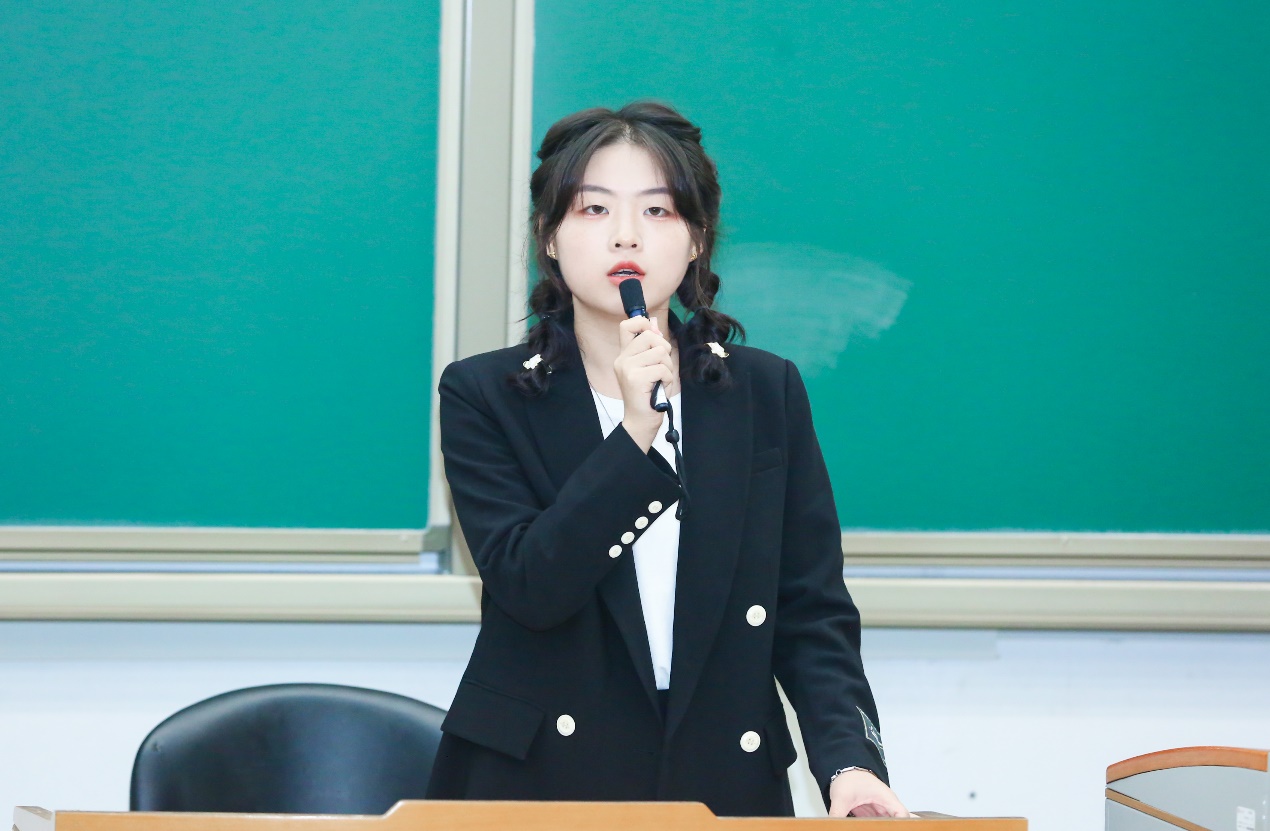 来自2022级3班的刘旖旎同学则从“一方水土养一方人”谈起。从壮美的新疆阿克苏走向首都北京,她在新疆的土地里培养了吃苦耐劳的精神,从新疆人不畏风沙的韧劲中汲取了奔向未来的不竭动力。而走进北京大学这一方水土,她表示将时刻把“爱国,进步,民主,科学”作为自己的座右铭,以“引领未来,守正创新”的精神,以开放包容的国际视野,以忠贞不变的爱国敬业意识,共同坚守信科人的气度、风骨与担当,保持定力,砥砺德行,让北大信科源源不断地为国家和民族书写新的传奇。