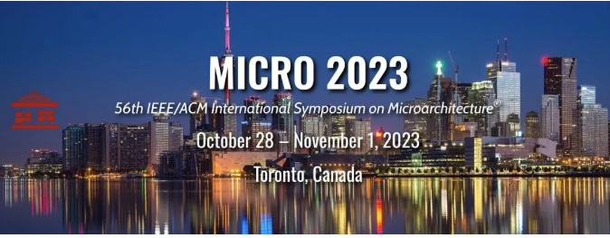在芯片制作的流程中,好的工艺和设计自动化(EDA)工具构成了芯片的躯体,决定了芯片的性能极限;而体系结构则是芯片的大脑,负责控制芯片的组织架构,以充分发掘芯片的性能。由电气电子工程师协会(IEEE)和美国计算机学会(ACM)共同举办的微架构国际研讨会(MICRO)是最富有影响力的微架构领域国际会议之一。该会议是展示、讨论和辩论先进计算和通信系统微体系结构思想和技术的顶级论坛。会议旨在结合学术界与工业界的不同观点,讨论面向未来的芯片架构。MICRO与计算机架构国际研讨会(ISCA)共同被认为是体系结构领域最重要的两个会议。今年,MICRO为第56届会议,于2023年10月28日到11月1日在加拿大多伦多举行。
