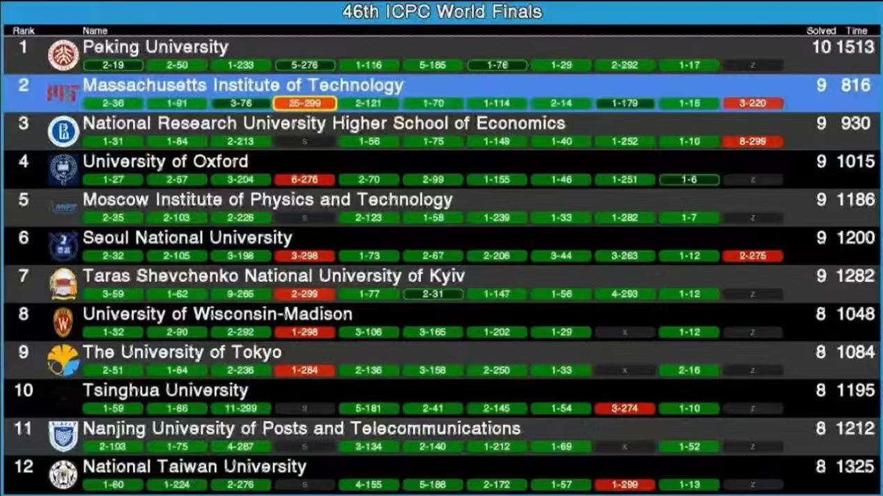 由于疫情原因,第46届赛事延期至今举办。两届合办的ICPC国际大学生程序设计竞赛全球总决赛汇集了规模最大的顶尖程序设计竞赛选手。本次总决赛共有50多个国家,170多所学校,840多位选手,共有200多支队伍参赛。