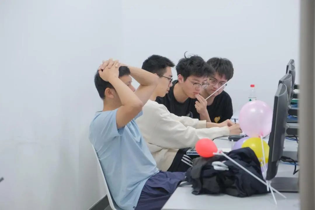 赛场上,各组选手沉浸在精妙的题目中,或小声讨论,或各自低头在纸上演算。此起彼伏的键盘敲击的声音,仿佛一个个音符,演奏着参赛队员头脑风暴的“乐章”。每完成一道题目,选手将获得一种颜色的气球,各色的气球活跃了赛场,也激励着同学们继续奋发解题。经过五个小时的角逐,最终评选了特等奖、一等奖、二等奖和三等奖,命题的一等奖、二等奖和三等奖,顽强拼搏奖,最快解题奖。