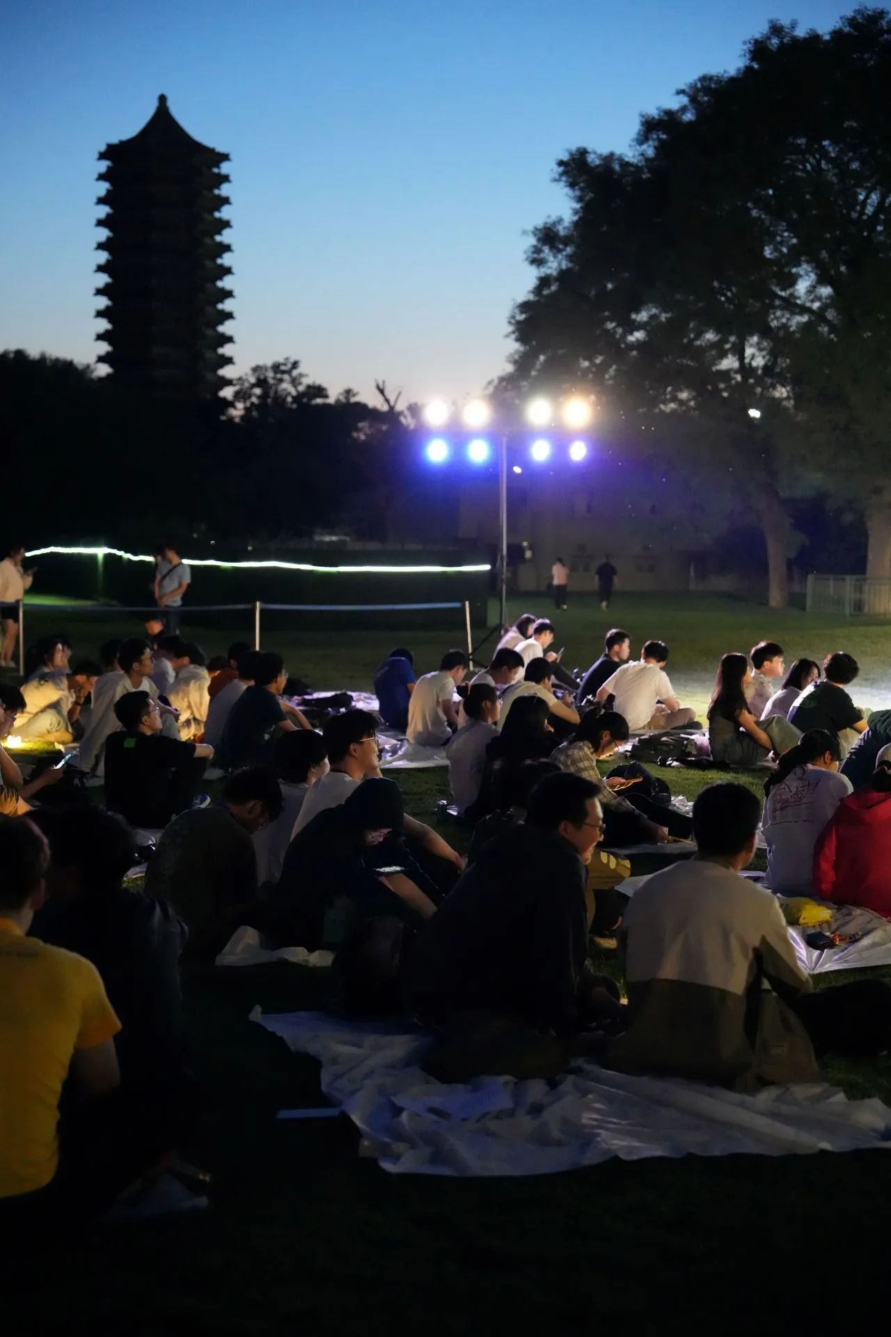 在恬园草坪的星光下