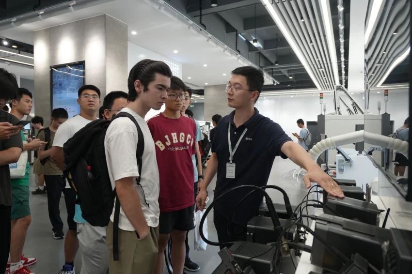 7月24日上午,实践团首先来到了金石机器人公司进行座谈和参观。金石机器人主攻桁架式机器人,也是国内早批研发和生产桁架机器人的专业公司。其生产的桁架式机器人已经应用到智慧物流、航天工业、仓库管理等多个领域。同学们对该领域产生了极高的兴趣,踊跃发言、积极提问。