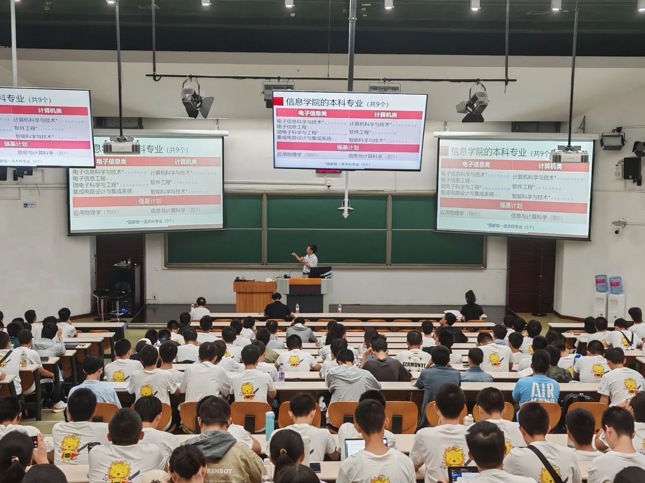 2024年9月4日上午10点,信息科学技术学院2024级本科新生教育“院长第一课”在二教101室成功举办。院长侯士敏以“了解过往,立足现在,面向未来”为主题,为全体新生带来了一堂精彩绝伦的专题课程。学院党委副书记贾方健、团委书记吕媛、年级辅导员付晓倩等学院老师与2024级全体新生共同聆听了本次课程。