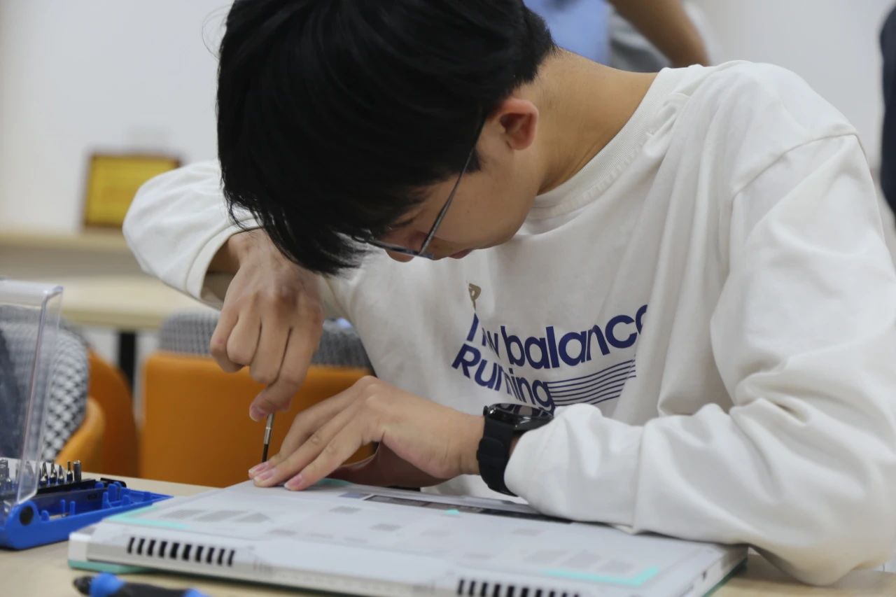 遇到自己难以解决的问题,新人志愿者或向前辈积极求助提问,或与其他志愿者展开讨论、现场学习,或上网搜拆机攻略及排障视频,细心琢磨,学以致用,极大提升了自己的知识水平与修机能力,丰富了自身解决电脑故障的经验。活动结束后,前来维修的同学多数对服务感到满意。
