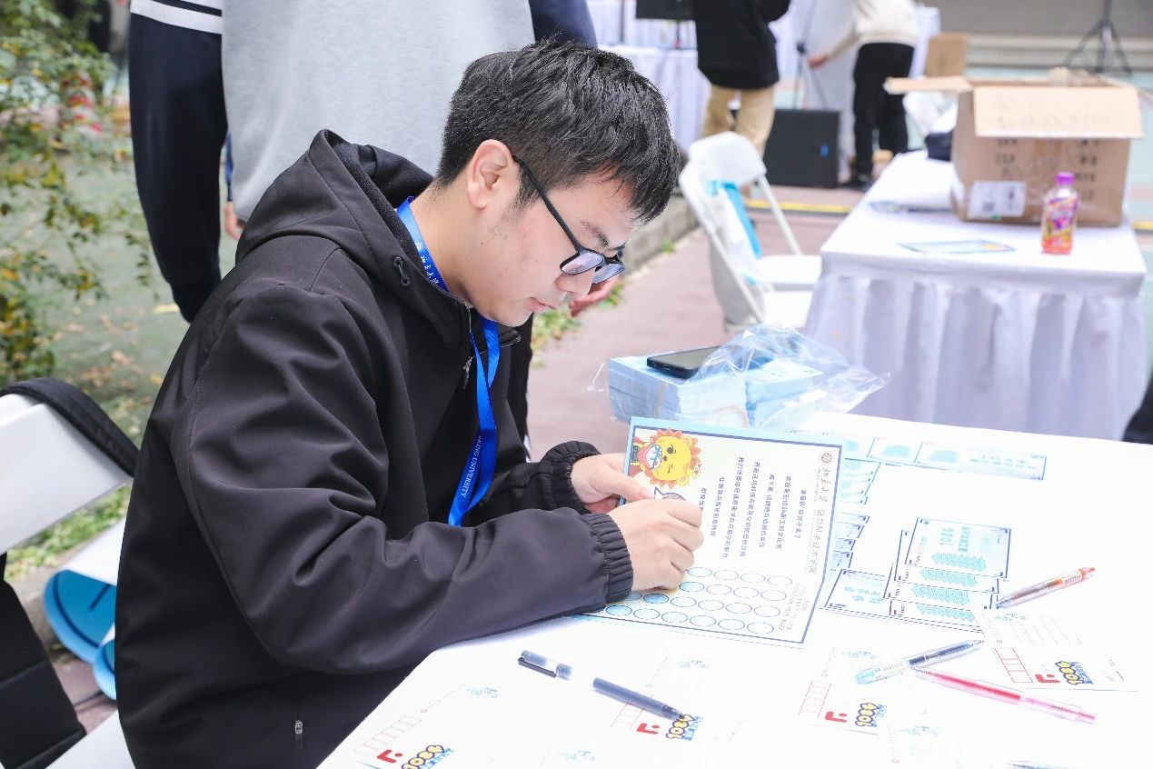 合作企业九坤和荣耀带来的趣味答题挑战赛让不少同学驻足,同学们在此让智慧与想象自由翱翔,在解题的挣扎与完成的欢愉中尽情感受信息与数字的魅力。