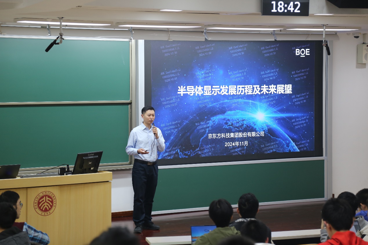 2024年11月8日晚,信息科学技术学院第三十期“知存头号玩家娱乐app官网”暨信息科学前沿与产业创新课程在理科教学楼107教室顺利举办。京东方科技集团股份有限公司技术战略与协创中心副院长王磊先生受邀进行了以“半导体显示发展历程及未来展望”为主题的报告。信息科学技术学院副院长王润声老师主持了本次头号玩家娱乐app官网。