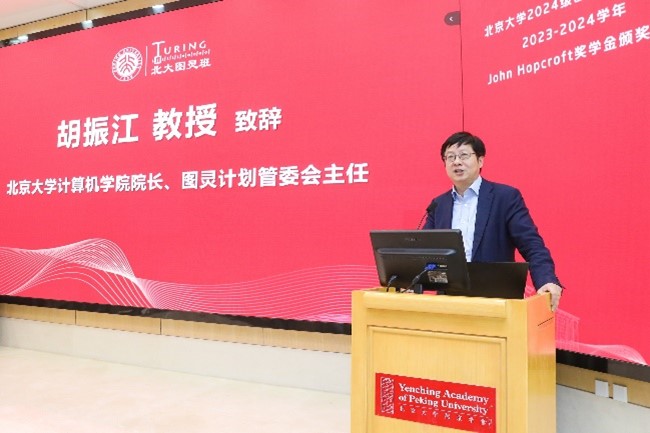 贾方健代表信息科学技术学院对各位老师、同学和嘉宾的到来表示欢迎,并向加入图灵班的2024级新生以及获得John Hopcroft奖学金的图灵班同学表示祝贺。