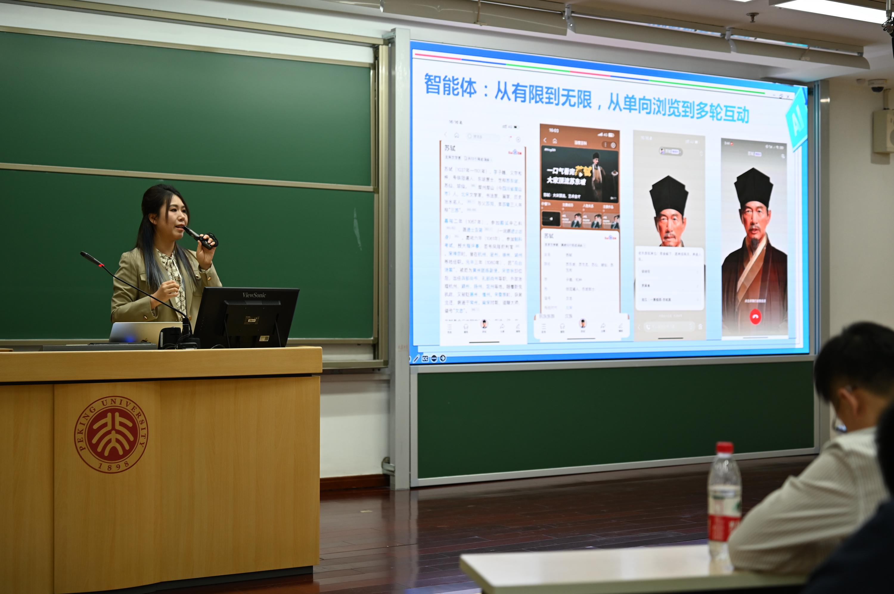 头号玩家娱乐app官网的第三部分主要围绕百科为什么要做智能体展开。容薇女士首先为同学们展示了从古至今知识载体的演进:结绳——甲骨文——竹简——纸张——网页——视频——智能体,表明了智能体是在用户习惯和知识载体发展推动下的一个必然趋势。紧接着容薇女士向同学们展示了百度智能体的特点,包括PGC+UGC,协同构建知识共同体、图文——视频,产出多元内容形态,有用/有趣的科普短视频、交互形式:XR沉浸式交互(巴黎圣母院全景实拍、VR复原西南联大等)等等。之后容薇女士又为同学们介绍了一些有趣的智能体如苏轼智能体、秦始皇智能体、李清照智能体等历史人物智能体以及易秩律师智能体、京剧智能体等等,使同学们真切感受到了智能体从有限到无限的潜力以及从单向浏览到多轮互动的发展趋势。