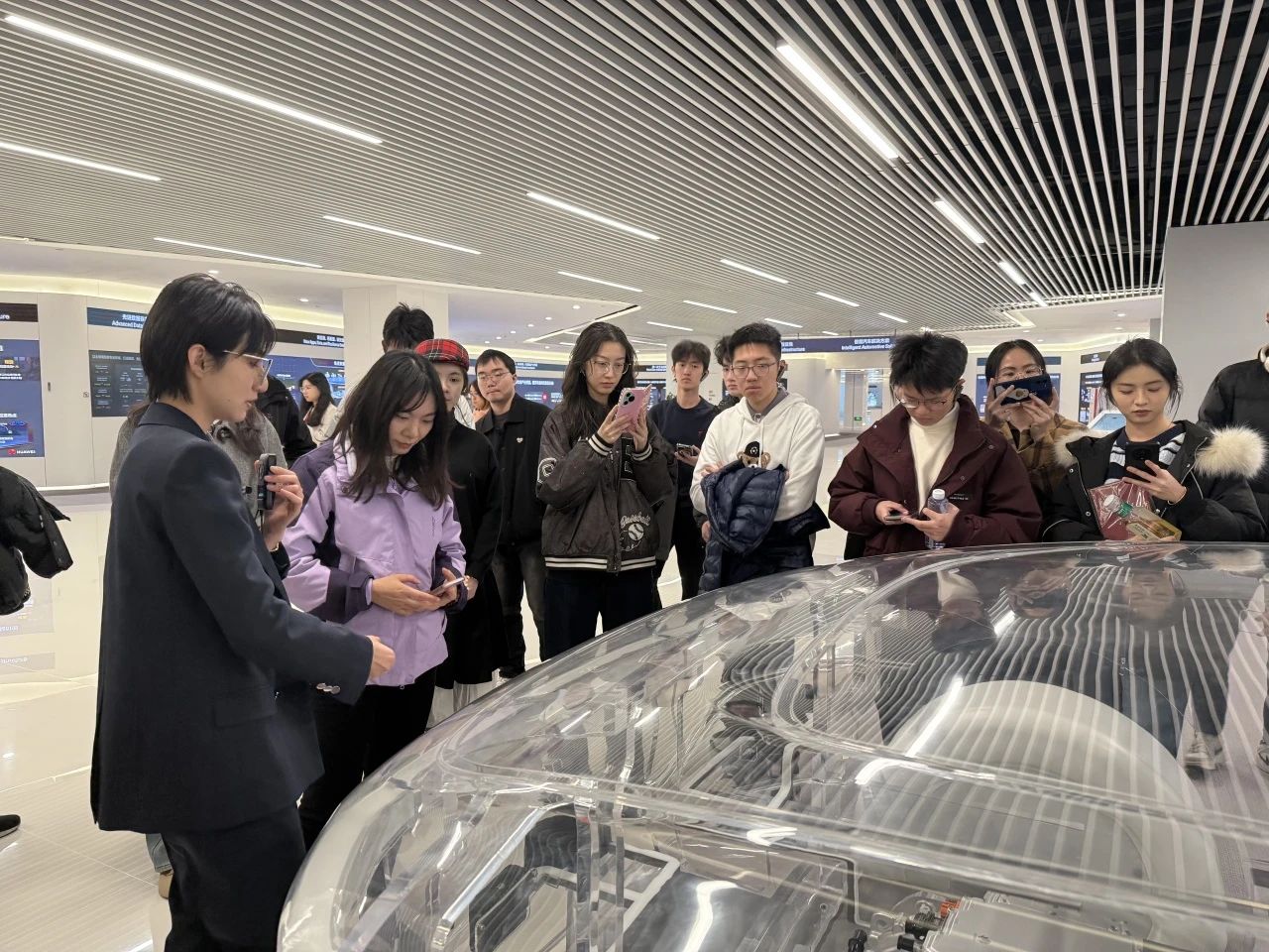 在工作人员的引导下,同学们首先走进华为北研所技术展厅,开启了一场前沿科技探索之旅。展厅内,讲解员为同学们细致介绍了华为在5G领域的研发成果和行业应用,以及华为在智慧城市、智能交通等领域的创新实践。同学们认真聆听,不时提问,与企业技术人员深入交流。参览过程中,同学们也“沉浸式”体验了华为最新数字终端产品,对华为的前沿技术和创新方案有了更直观的认识。