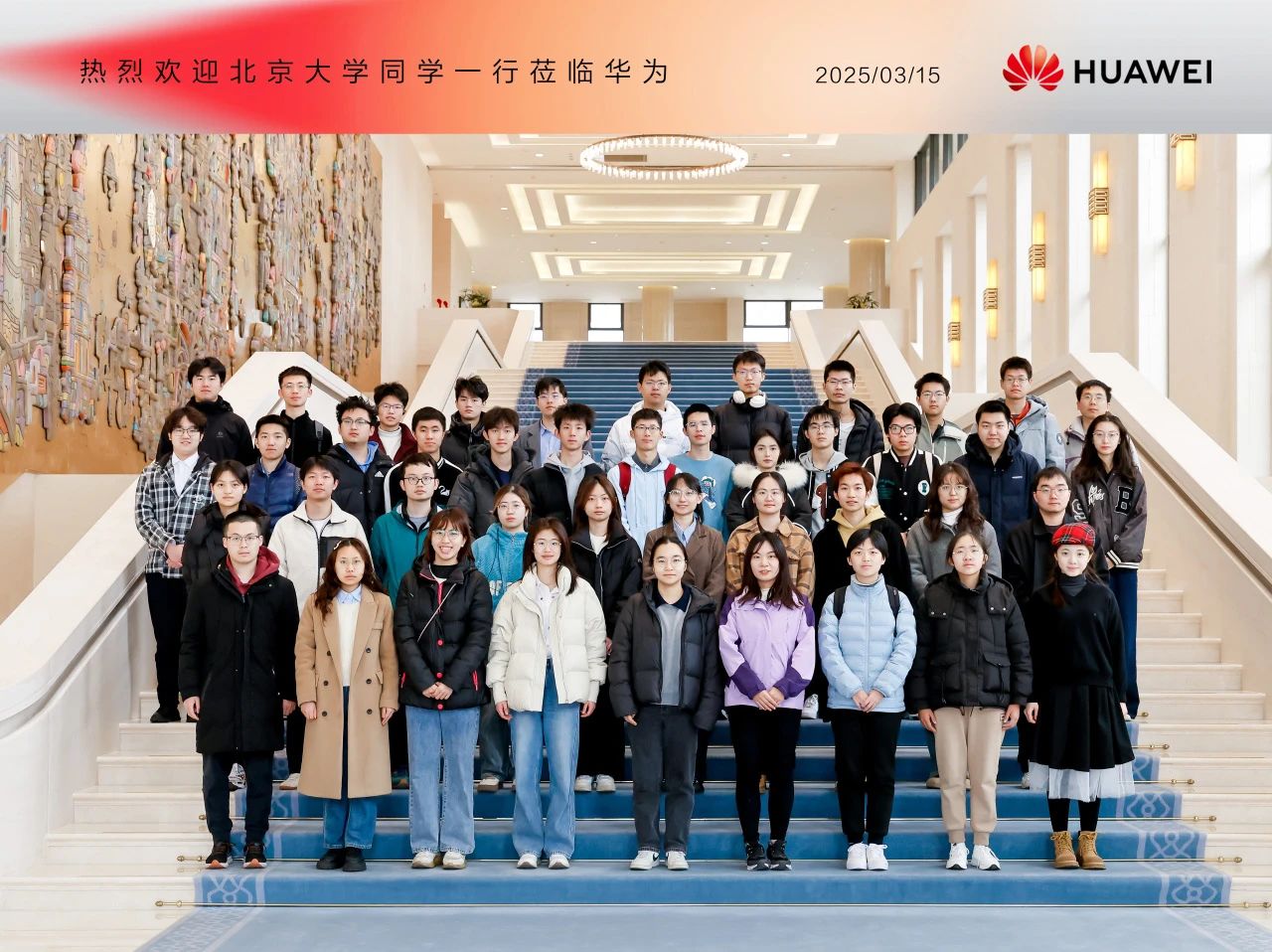 2025年3月15日上午,由北京大学学生会、信息科学技术学院学生会与华为北京研究所联合开展的实践参访活动于华为北京会展中心举行。来自不同院系的近50名同学组成参访实践团,参览企业科研成果,共话时代前沿课题。