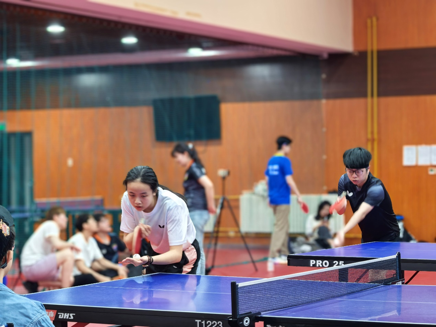 第二场女单的结局颇为可惜。王书乾凶狠的搏杀和变化的节奏,医学部梁至婧城墙一般的防守,0:3输下的每一局都是在10:10之后一次次碰撞之后的遗憾,每一局可能就是差那么一点,如果当时能多一个运气球,或许取胜也可以是我们。
