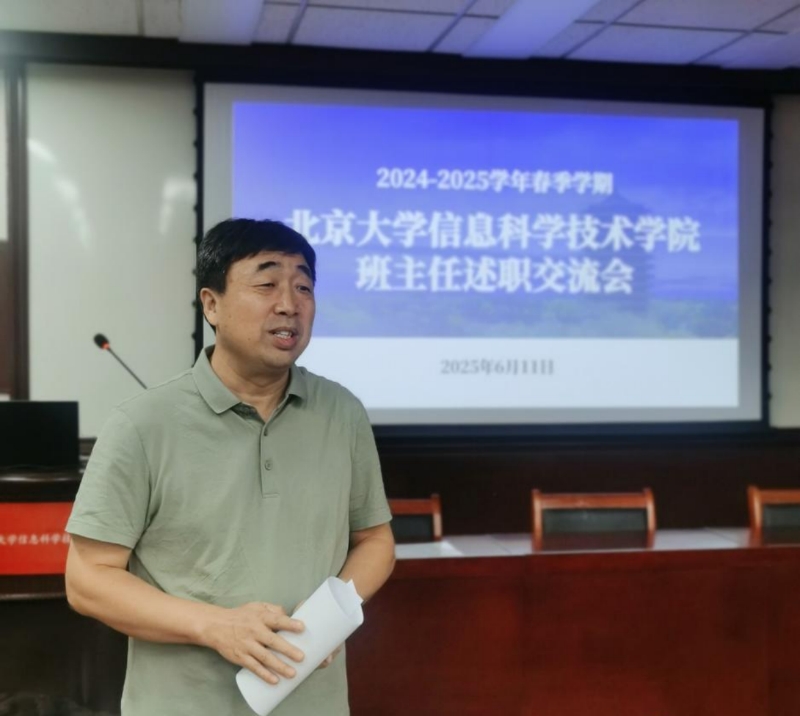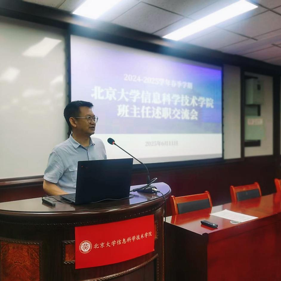 2025年6月11日下午,信息科学技术学院举办2024-2025学年春季学期班主任述职交流大会。本次大会旨在落实立德树人根本任务,夯实“三全育人”工作实效,进一步规范班主任队伍管理、加强班主任队伍建设、增进班主任交流学习。会议响应北京大学2025“科技创新年”整体部署,积极探索具有北大信科特色的协同育人机制,共育信息学科新质人才。学院党委书记严敏杰,院长侯士敏,党委副书记贾方健,团委书记吕媛,辅导员付晓倩、刘天怡,4个本科年级、来自学校7个院系单位、共计52位班主任老师参加了会议。大会由学院学生工作办公室主任李子奇主持。