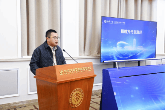 解环宇代表捐赠方致辞。作为2011级北大信科学院本科生,他先解释以“求索”一词命名该奖项的初衷,强调“求索”不仅是他个人创业与明汯投资企业的发展过程,更是一个人的人生历程。他还提到自己带领团队一直倡导并营造一种尊重好奇心、鼓励自主探索的成长环境:让大家得以沉浸于求知之乐,而非执念于标准答案;因兴趣而学习,因热爱而深耕;勇于走出舒适区,在挑战中锤炼思维、拓展边界。过程中,在座的同学们深切感受到了信科前辈沉甸甸的信任与期许。