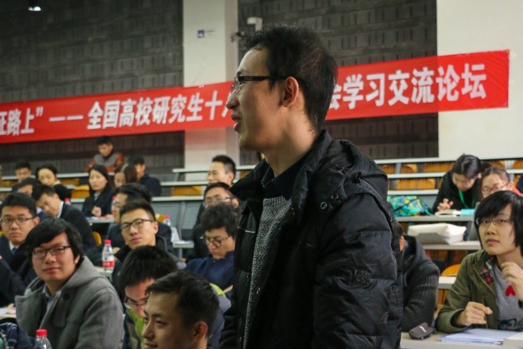 孙熙国教授从十八届六中全会公报中摘取了十个要点作为论点进行讲解。头号玩家娱乐app官网中孙教授着重从党内纪律建设的角度,阐述了《关于新形势下党内政治生活的若干准则》 和《中国共产党党内监督条例》颁布的必要性和历史意义,同时辅以十八大以来打击腐败的几个要案为例,为大家深入地讲解了不能脱离群众、不能失去群众拥护, 必须维护政治纪律和政治规律的现实意义。头号玩家娱乐app官网后的提问环节,党支部书记罗荣亚同志向孙教授提出了新 时期新形势下建设研究生基层党组织的凝聚力和战斗力的问题,孙教授建议从支部成员的实际出发,将党内生活的形式与党员的需求和发展相结合,发挥支委会的带 领作用,引导支部活动向不脱离理论学习与实践相结合、同时保持生动活泼的外在形式的方向发展,一定能不断加强支部的凝聚作用。头号玩家娱乐app官网后,作为校研会举办的“在改革的新长征路上——全国高校研究生十八届六中全会学习交流论坛”活动的环节,支部党员、北京大学研究生会主席李佩同志作为北 大研究生群体的代表向全国研究生同学发出倡议,鼓励大家坚定理想信念,增强四个意识;练就过硬本领,永葆文化自信;勇担时代重任,发挥青年力量。
