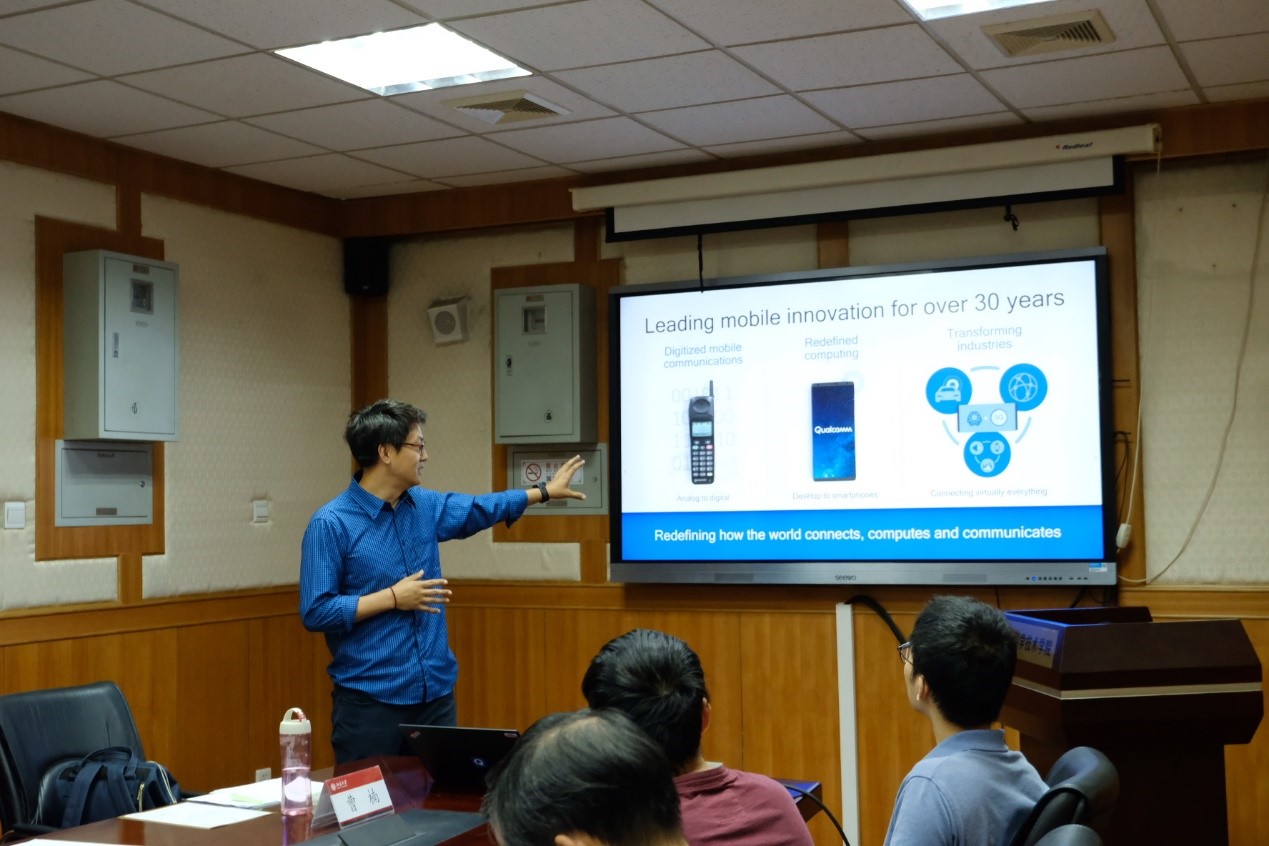 在会议的最后,徐晧博士对高通公司的具体业务进行了系统详细的介绍。他着重介绍了高通公司对5G的标准和预商用,并介绍了高通公司的发展方向和研发工作的具体内容,对公司未来的发展进行了展望。随后,由高通公司人力资源部余萌萌女士向同学们简要介绍了高通公司的招聘事宜,列出了高通公司计划招聘的岗位及暑期实习生的具体情况。欢迎在座同学们关注。