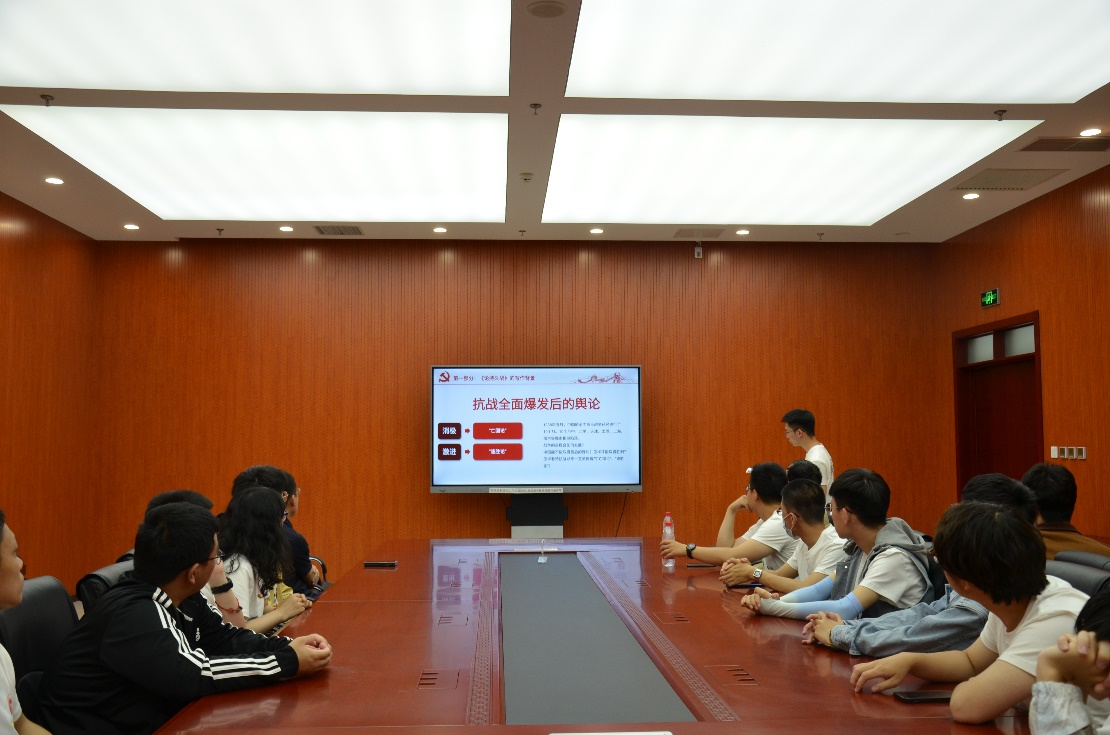 随后,历史学系2021级本科生陈章旭结合实践团在十渡镇的实践调研情况,组织实践团开展理论学习,与大家一同重温毛泽东政治军事理论经典论著——《论持久战》,学习习近平总书记关于新时代生态文明建设的重要论述——“两山”理论,将理论与实践相结合,使大家从中领悟党为中国人民谋幸福,为中华民族谋复兴的一贯使命。在日评会的最后,同学们积极讨论,并分享自己的活动心得。