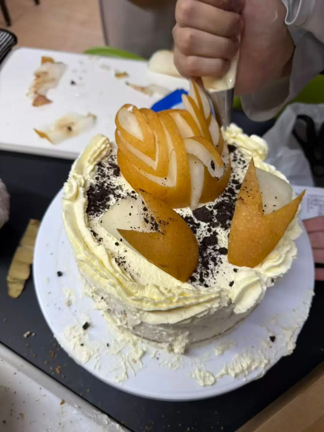 在同学们灵巧的双手下,蛋糕变成了灵感的舞台,被装饰得精巧可爱,带来了一场视觉,味觉和嗅觉的三重盛宴。
