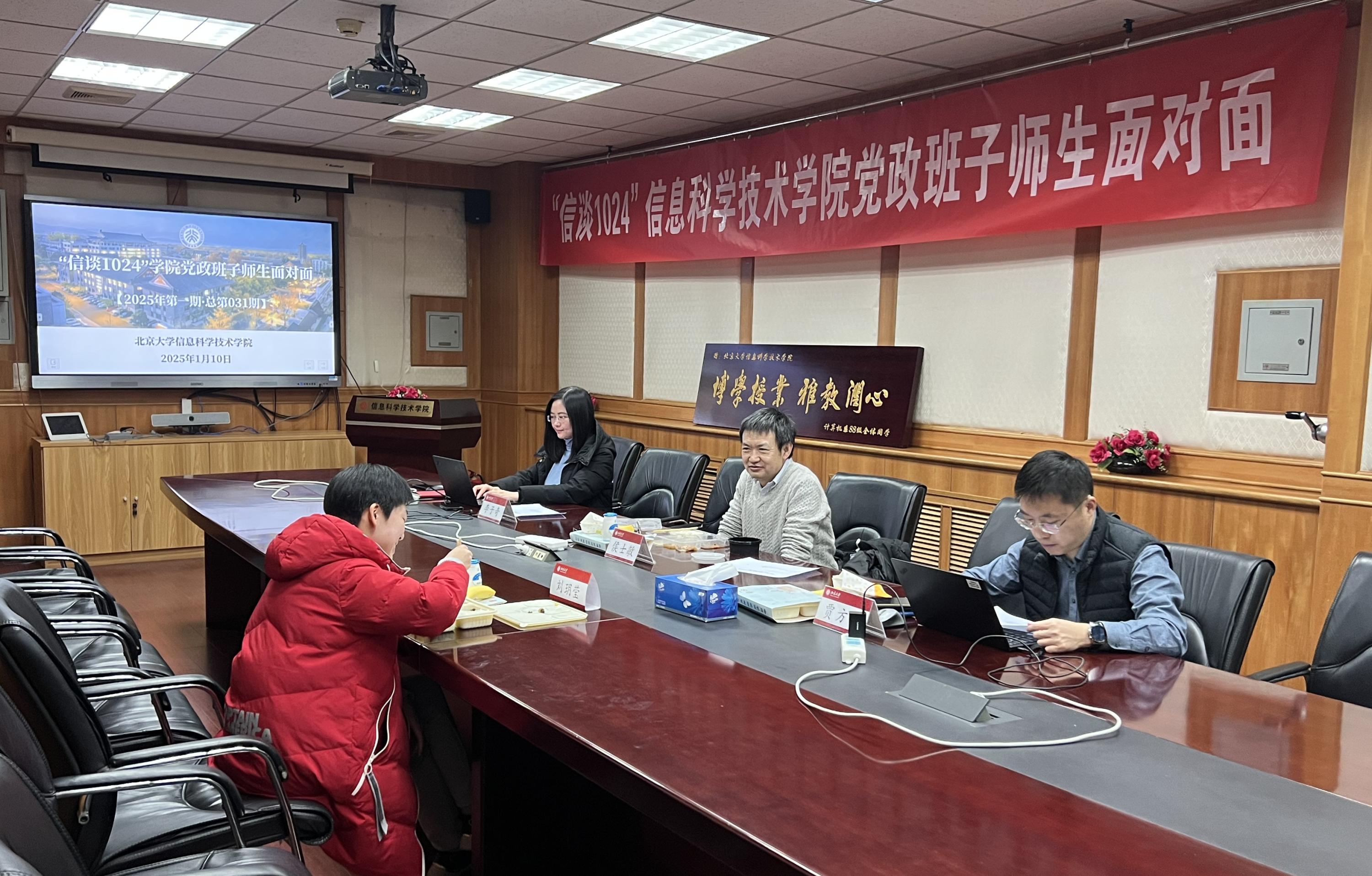 2025年1月10日中午,新年伊始,信息科学技术学院在理科二号楼2111会议室举办2025年第一期(总第31期)“信谈1024”学院党政班子师生面对面活动,本次座谈会采取个人单独面谈的形式,对报名同学的问题进行全面交流答疑解惑。院长侯士敏、党委副书记贾方健,成功报名的学生代表参加了本次座谈。活动由学院学工办主任李子奇主持。